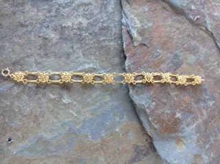 Elegante pulsera con diseño de filigrana plata de ley chapada de oro. Largo 17 Ctm , ancho 13 mm - Plata de ley. - Acabado chapado en oro. Artículo nuevo. ( No negociable
