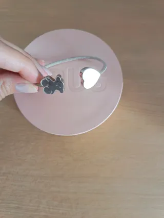 Elegante pulsera de plata con un charm. De 17cm - Material: Plata - Color del charm: Rosa y plateado
