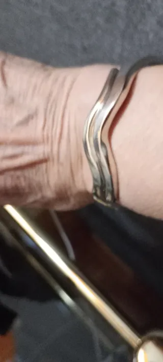 Elegante brazalete con un diseño ondulado plateado. - Diseño curvo y moderno. - Acabado brillante. - diametro 6cm