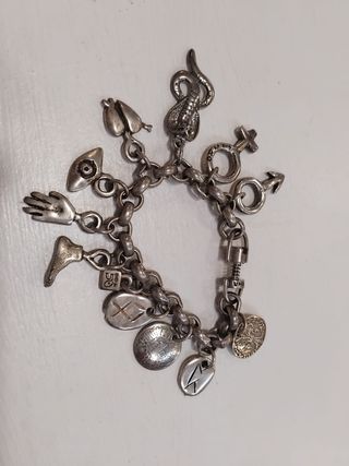 Preciosa pulsera de la marca Uno de 50. Color plata / plateado y tiene un diseño único con varios colgantes. - Incluye varios encantos con diferentes símbolos. Nueva sin estrenar, hay más de una, precio por cada una. Se puede enviar o recoger en Tienda Solidaria Piel de Mariposa SEVILLA C/Feria 145 (+ info en la última foto)