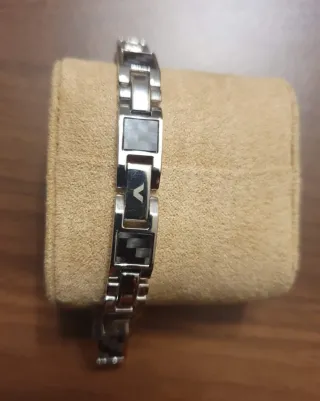 eloj pulsera de plata 925 con ónix (corazones) Reloj elegante y muy bonito. ✔ Plata 925 (sellado, ver fotos) ✔ Ónix negro natural en forma de corazón ✔ Quartz (funciona) 📏 Largo: 16 cm