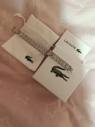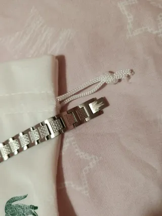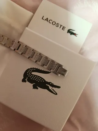 SOLO ENVIO Elegante pulsera de la marca Lacoste. - Diseño de eslabones con detalles. - Cierre de seguridad.