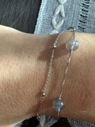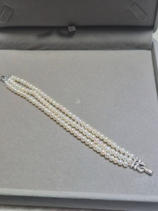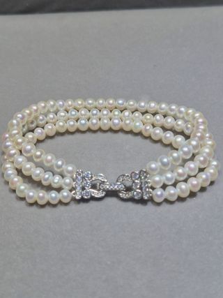 Pulsera de perlas blancas (2 vueltas) con cierre de plata 925. Perlas 4–5 mm, forma off-round. Largo 19 cm. Estado muy bueno.