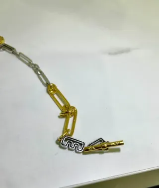 Original pulsera de plata marcada en chapa contrastes 925 italy Estrella 333 AR tiene dos arandelas redondas doradas con un diseño único, fabricada en Italia. - Diseño de eslabones circulares. - Cierre de arandela grande