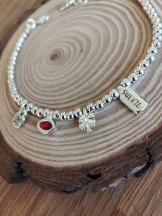 Pulsera de plata de ley 925 marca TimeRoad, nueva y sin usar. Diseño elegante de doble cadena con dijes decorativos con pedrería: Rosa Trébol de 4 hojas Bolita Incluye caja original roja, perfecta para regalo. 📍 Entrega en mano en zona Patraix o Avenida del Cid, Valencia