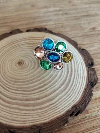Anillo de metal plateado con cristal multicolor. Ajustable. Descuento por compras y packs con un sólo envío. Anillo, pendientes, pulsera, plata, cuero, plateado, acero, estilo Uno de 50.