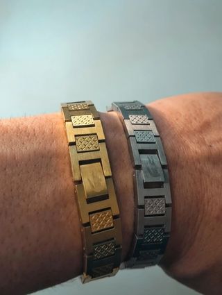 Pulsera con un diseño moderno de eslabones rectangulares. - Eslabones metálicos. - Acabado brillante.