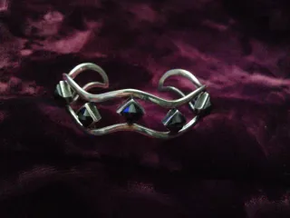 Preciosa!! Elegante pulsera brazalete vintage años 60 - Diseño ondulado en plata 925 marcada - Adornada con siete gemas Onix negro tallado facetado de corte cuadrado