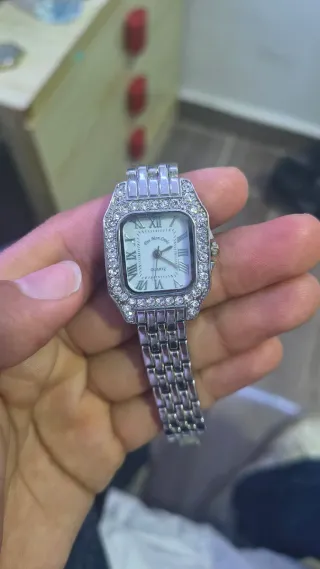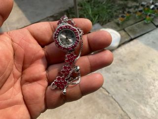 Reloj pulsera de plata 925 con piedras rojas (quartz) Descripción: Reloj muy bonito y llamativo. ✅ Plata 925 (marcado “SILVER 925”, ver fotos) ✅ Piedras rojas engastadas (tipo rubí, sin certificado) ✅ Movimiento quartz (funciona) ✅ Parte trasera de acero inoxidable