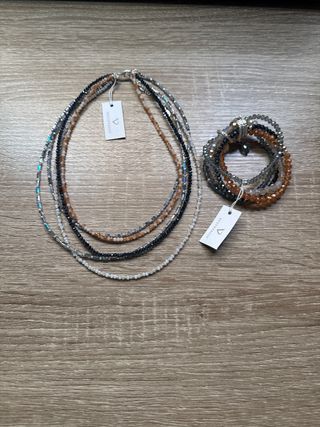 CONJUNTO COLLAR Y PULSERA PLATA Y MARRON