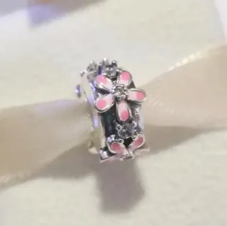 Charm separador con diseño de flores en plata 925. Un detalle encantador para tu pulsera. - Diseño de flores con esmalte rosa. - Detalles de circonitas brillantes.