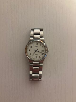 Elegante reloj de pulsera de la marca Lotus. Su diseño combina a la perfección. Caja de 36mm unisex Funciona a la perfección y se envia con pila de repuesto y herramenta para abrir el reloj Negociable - Brazalete de eslabones plateados original. - Esfera redonda blanca con números. - Cierre de seguridad.