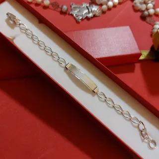 Elegante pulsera esclava de plata con un diseño clásico y un grabado central. - Material: Plata. - Diseño: Cadena de eslabones curvos. - Detalle: Placa central para grabado.