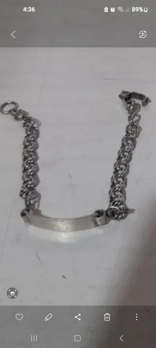 Conjunto de dos esclavas de acero, una para hombre y otra para mujer. Son ideales para llevar juntas o por separado. Ideal para parejas. Están nuevas se pueden grabar El precio es del conjunto. - Diseño de cadena. - Placa central. - Cierre de mosquetón.