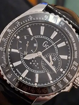Reloj Guess GC29006M Esfera 40mm Maquinaria suiza. Caja de acero inoxidable. Correa de piel. Resistente al agua 100 m Cierre de pulsera ajustable