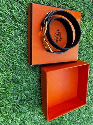 Elegante pulsera de la marca Hermes. Era de mi ex - Diseño con detalles en negro y dorado. - Cierre de clip con el icónico diseño H de la marca.