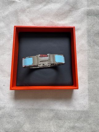 Pulsera de la reconocida marca Hermes con un diseño icónico. - Diseño H. - Detalles en azul y dorado. Tamaño PM. Precio negociable.