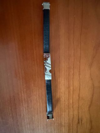 Elegante pulsera de cuero trenzado con cierre metálico. Una en azul y otra en negro. - Sin usar nunca y en su caja original. - Diseño trenzado. - Cierre de gancho. - Detalle de logo grabado. Precio por unidad