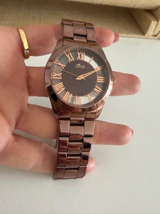 Elegante reloj Lotus para mujer. - Diseño moderno y sofisticado. - Esfera con detalles finos. - Pulsera metálica ajustable. -Contiene plástico todavía - Sin uso