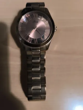 Reloj de pulsera Lotus modelo 15611 con una esfera de color rosa y detalles plateados. Correa de acero inoxidable con cierre de seguridad Funcionando perfectamente.