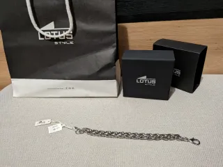 Preciosa pulsera de la marca Lotus Style para mujer. Fabricada en acero inoxidable de alta calidad con detalle de circonitas brillantes. Diseño elegante y moderno, ideal para regalo o uso diario.