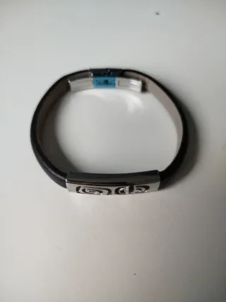 Elegante pulsera de la marca Lotus Style. - Diseño con cuero negro y detalles en plata. - Cierre de seguridad. - Ideal para uso diario o ocasiones especiales.