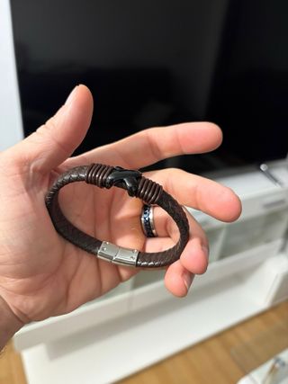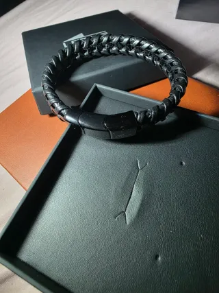 Pulsera de hombre con un diseño trenzado y elegante. - Material: Cuero - Color: Negro - Cierre de acero - Como nueva - Sin caja