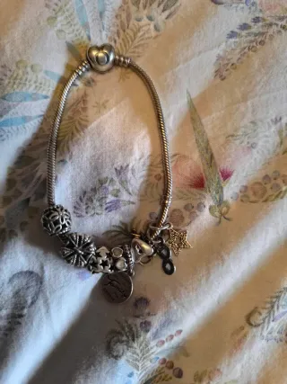 💎 Pulsera estilo Pandora con charms – Plata y tonos azules 💎 Vendo pulsera tipo Pandora con varios charms decorativos, algunos con piedras rosas, muy elegante y femenina. ✨ Diseño clásico y combinable ✨ Cierre tipo Pandora ✨ Ideal para regalo o uso diario ✨ Buen estado general ⚠️ No es Pandora original (precio acorde a ello). 📍 Entrega en mano o envío por Wallapop