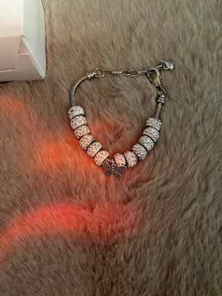 Pulsera con charm de mariposa estilo Pandora 🦋 - Diseño de serpiente. - Cierre de mosquetón. - Adornada con cuentas brillantes. - Charm de mariposa