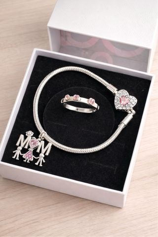Conjunto Pulsera, Anillo Corazón y charn Mom