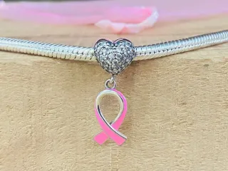 Charm Colgante | Corazón y Lazo Rosa