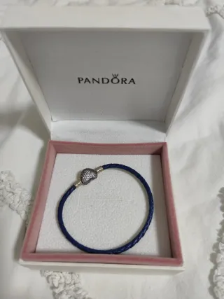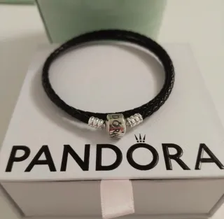 Pulsera Pandora original, material cuero resistente, con colgante/charm de plata. Accesorio ideal como regalo, moda mujer, joyería Pandora. Se entrega con caja original.
