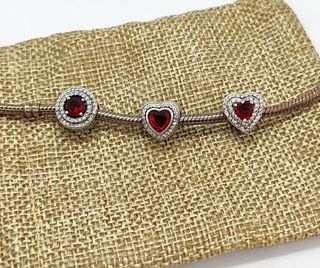 Preciosa charm de Pandora con forma de corazón. Es de color rojo intenso y tiene detalles plateados. Se entrega en su caja original. - Ideal para añadir a tu pulsera Pandora. - Perfecto regalo para San Valentín. - En excelentes condiciones.