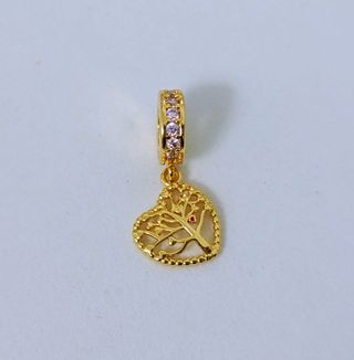 Charm Colgante Corazón Árbol de la Vida. De plata dorada con circonitas rosas. Compatible con pulseras Pandora.