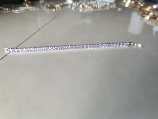 Elegante pulsera con un diseño delicado y piedras de color morado. - Cadena de plata. - Piedras engarzadas.