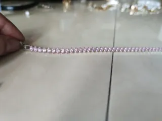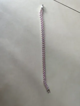 Elegante pulsera con un diseño delicado y brillante. - Cadena de plata. - Piedras de color rosa. - Cierre seguro.