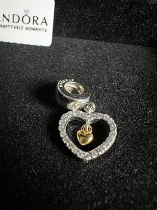 Este charm de Pandora presenta un diseño de doble corazón, uno exterior con circonitas y otro interior en dorado. - Corazón exterior con circonitas brillantes. - Corazón interior en tono dorado. - Cierre con el logo de Pandora.