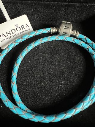 Pulsera Pandora Cuero Trenzado Doble Azul