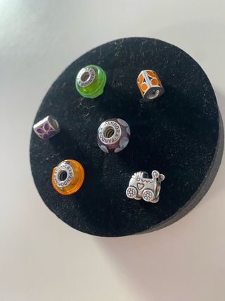 Cada pieza a 12€ cada una. En venta 11 encantos de la marca Pandora. Son de distintos colores y diseños, algunos con detalles plateados. - Incluyen abalorios de cristal y metal. - Están en buen estado. - Perfectos para personalizar tus pulseras Pandora.