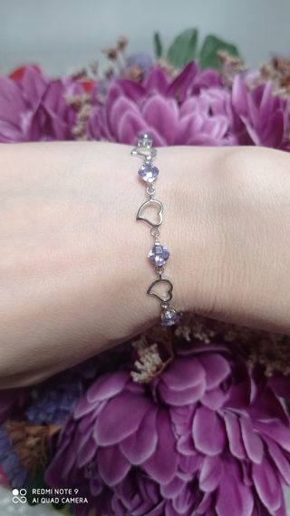 PANDORA pulsera de corazones de plata y amatistas