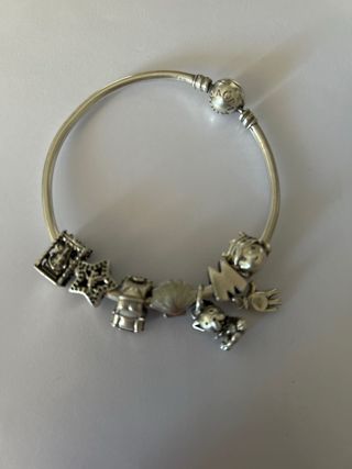 Pulsera Original Pandora con 6 Charm, como nueva .Tiene su caja, bolsa y bolsita todo original. La pulsera es de 18 cm. No se hacen envios , recogida zona fuengirola