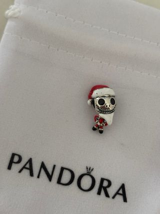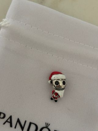Este charm de Pandora está inspirado en Pesadilla antes de Navidad. - Diseño de Jack Skellington con traje de Santa. - Detalles en esmalte rojo y blanco. - Acabado plateado.