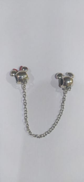 Charm de plata 925. Ideal pulsera pandora. Cabeza Mickey y Minnie con cadena. Nuevo a estrenar.