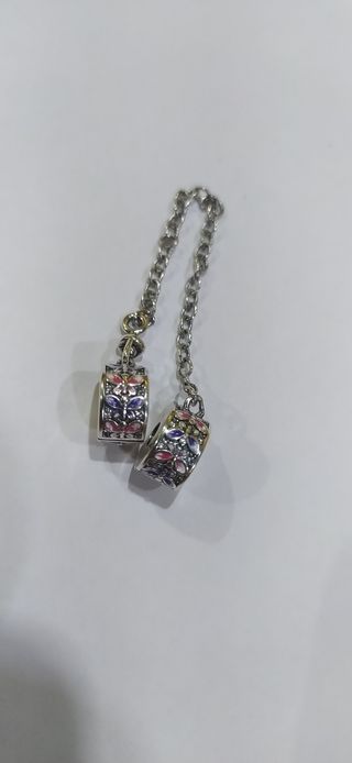 Charm de plata 925. Ideal pulsera pandora. Charm doble con cadena, de click, con flores. Nuevo a estrenar.