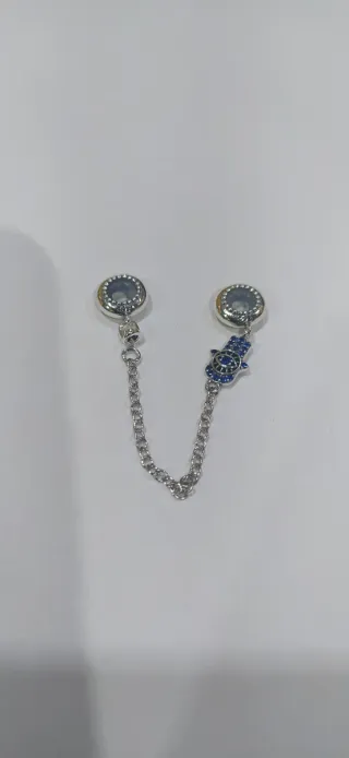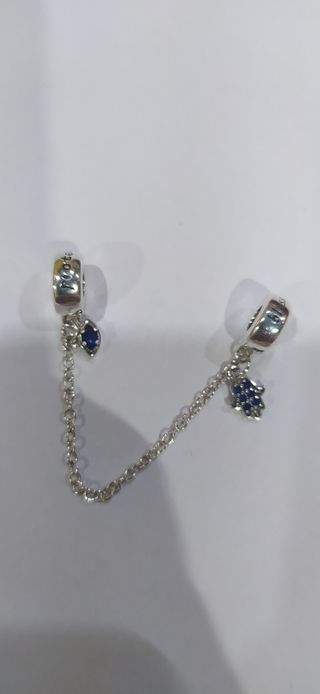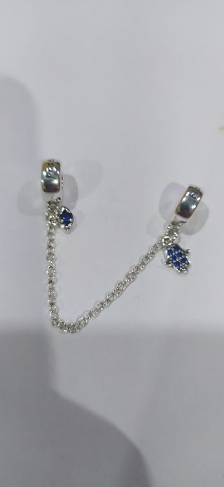 Charm de plata 925. Ideal pulsera pandora. Charm de seguridad, ojo turco y mano de Fátima. Nuevo a estrenar.