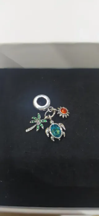 Charm de plata 925. Ideal pulsera pandora. Charm tortuga, sol y palmera