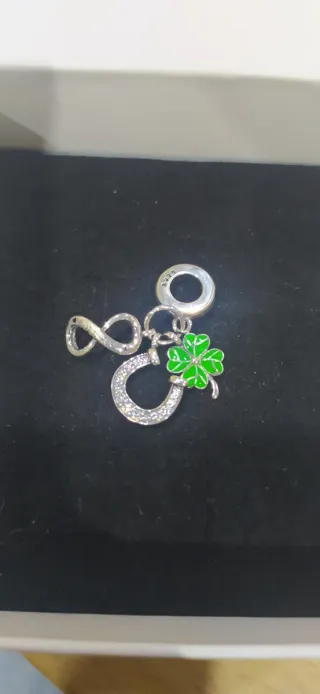 Charm de plata 925. Ideal pulsera pandora. Charm herradura, trébol y infinito. Nuevo a estrenar.