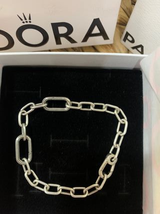 Elegante pulsera de la colección Pandora Me. Su diseño moderno y versátil la hace perfecta para cualquier ocasión. - Cadena con eslabones de gran tamaño. - Cierre de mosquetón con el logo de Pandora grabado.Solo vendo en mano zona sur de Madrid