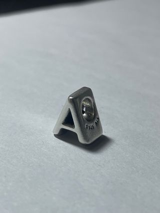 Charm de la marca Pandora con la forma de la letra A. - Diseño con pequeños corazones. - Acabado en plata. precio negociable