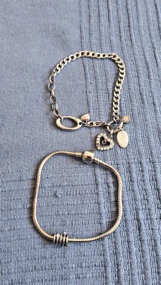 Conjunto de dos pulseras. - Una pulsera de eslabones con varios charms. - Una pulsera tipo pandora con cierre de seguridad. - venta lote - 60mm dentro